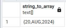 Explanation: Splits the string ’20-AUG-2024′ into an array with each element separated by Dash or hyphen