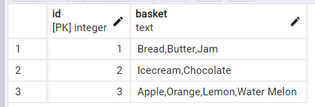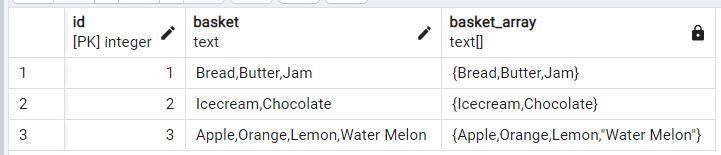 SELECT *, string_to_array(basket, ',') AS basket_array FROM orders_items;